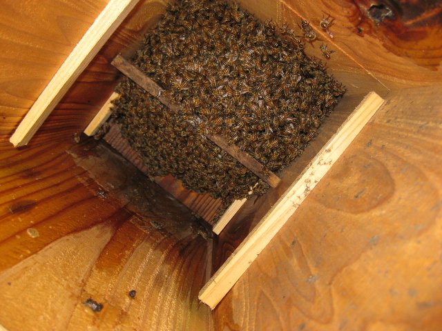 日本みつばち1群春の分蜂群、画像は参考品です。 | 良い群価格1群飼育箱入りで38,000円から45.000円 縦型飼育箱入りで箱付です。 お引き取りに来られた場合のサービスです。 叉 希望の飼育箱があればお知らせ頂ければ対応も出来る場合もあります。 日本みつばちの入手入門のページに |