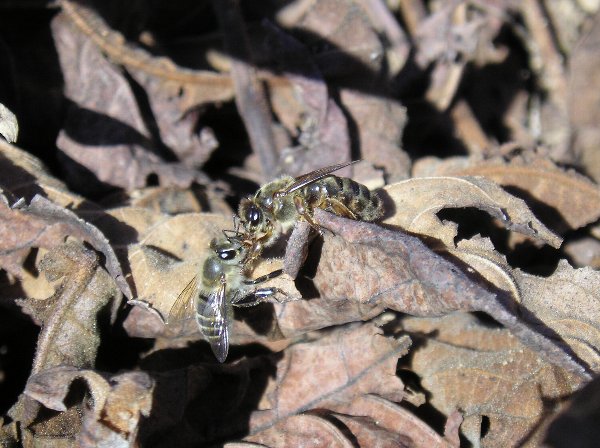 体型不良の雄蜂などが外に居る所が見られます。