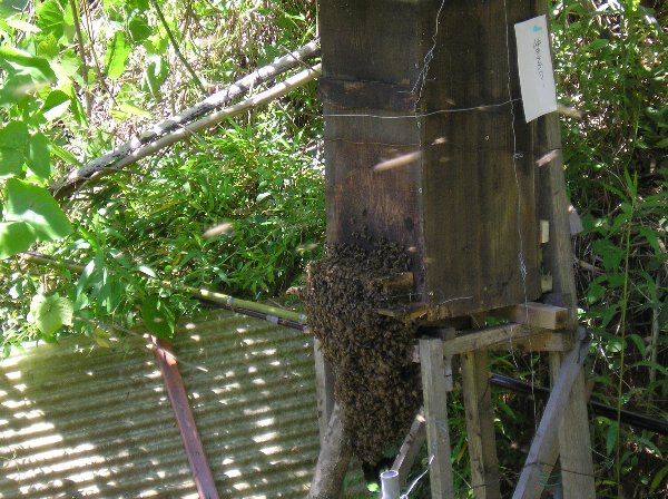 日本みつばちの群が逃走して行こうとしております。