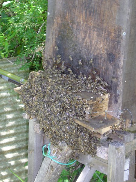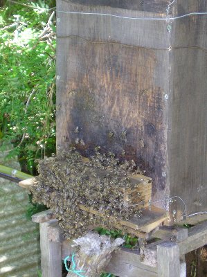 逃走した働き蜂群が少しずつ戻りはじめてきました。