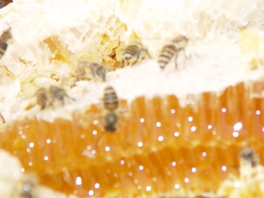 巣板の上部分は蜜です、中ほどは花粉などで下の方の部分は仔どもです。